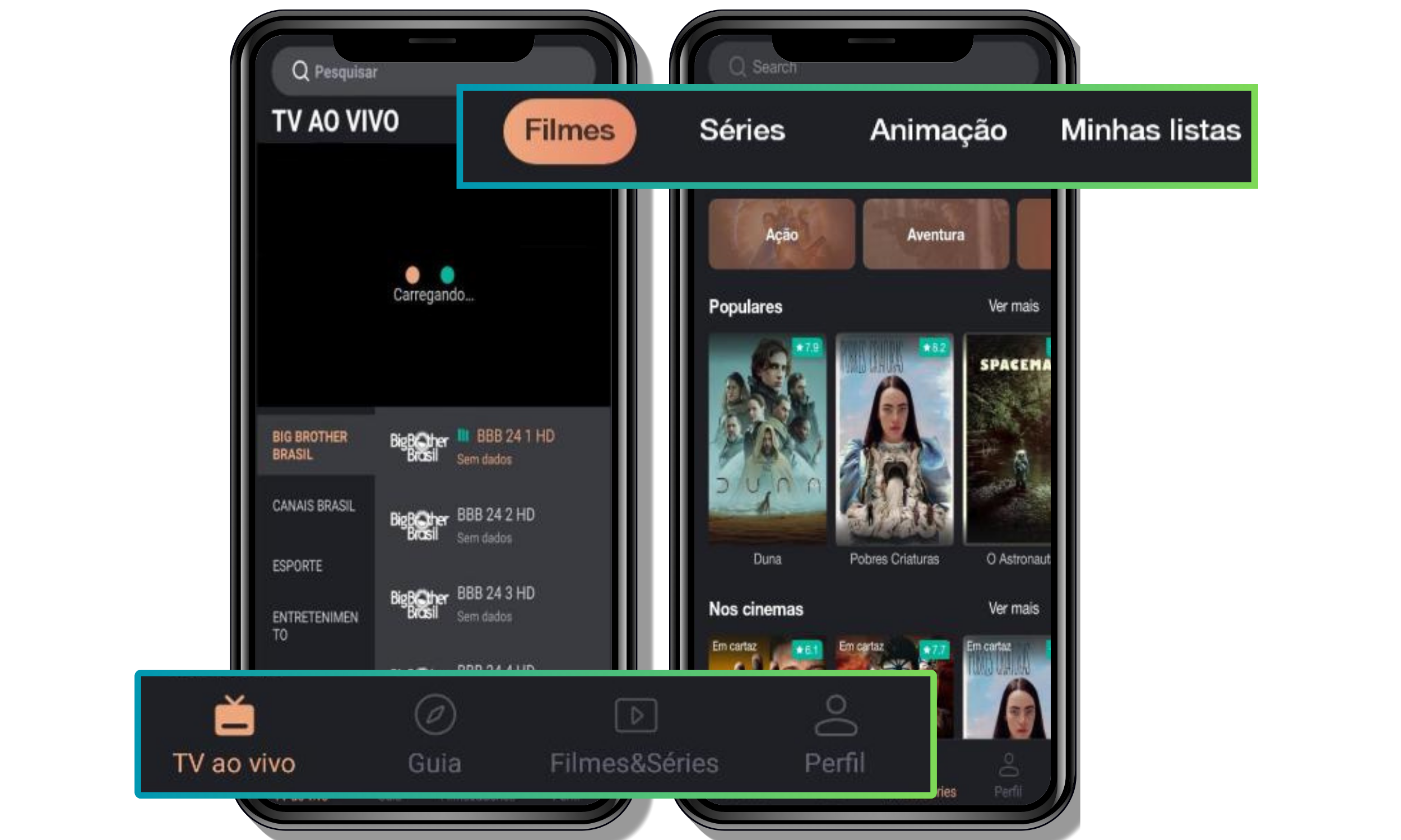 É possível usar a mesma conta em dois dispositivos (como TV Box e celular) simultaneamente, oferece uma experiência de uso mais flexível e conveniente.